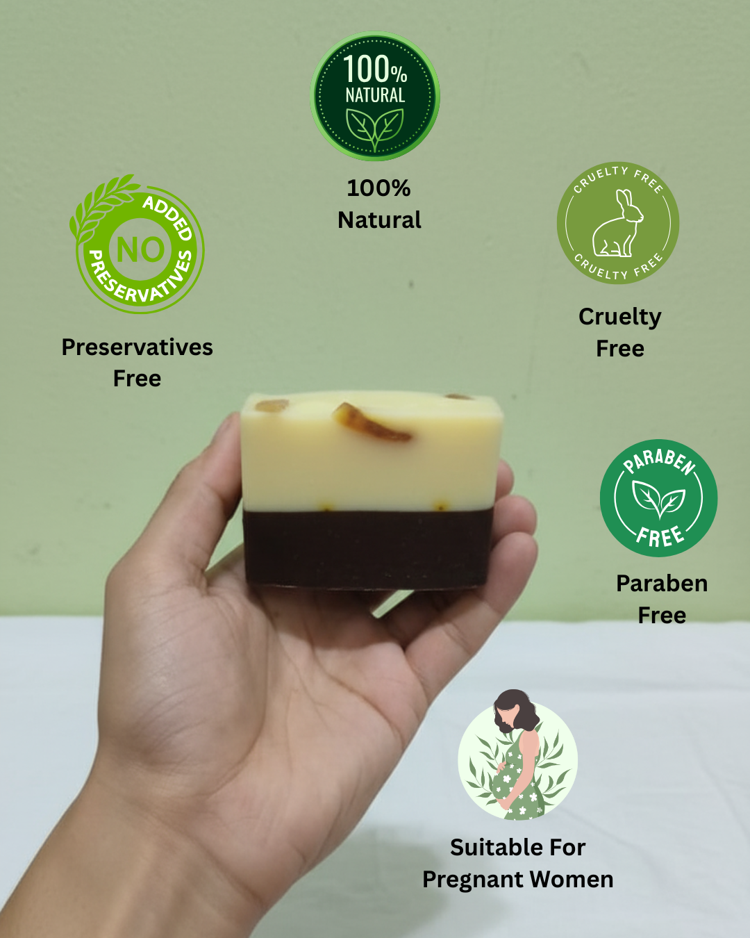 Glow Naturally with Coconut Charcoal Double Layer Soap deep cleansing and nourishing bar crafted with activated charcoal and pure coconut oil. It gently removes dirt, oil, and toxins from pores while keeping the skin soft, hydrated, and fresh. Ideal for oily to combination skin, this soap helps reduce acne, blackheads, and dullness, giving your skin a clean, natural glow.